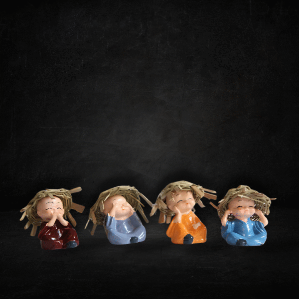 GGS Resin Baby Monk Set of 4 for Home, Office Desk Decor and Gifting