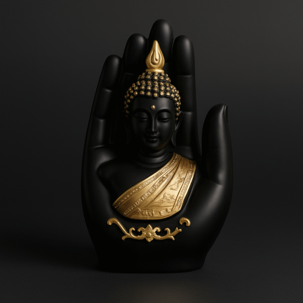 GGS Resin Black and Gold Palm Buddha for Home Temple, Room, Table Top Decor