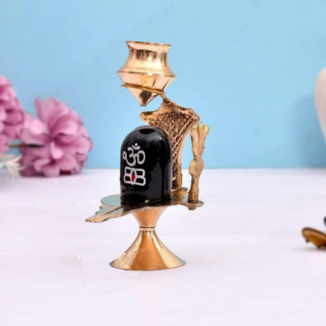 GGS Decor Crafted Brass OM AUM with Stand for Home Puja Room Mandir, Table Top Decor For Home Office Décor, Car Accessory