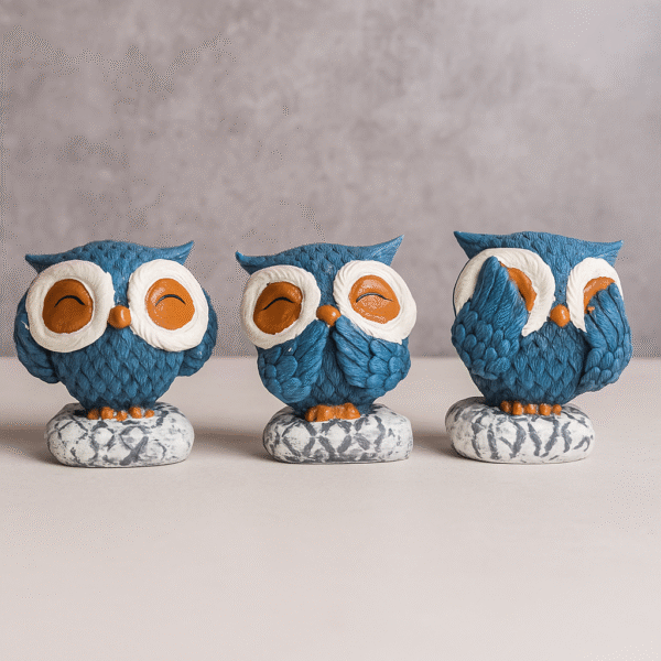 GGS Decorative Owl Statues Set of 3 for Home and Garden, Vastu Inspired Idols