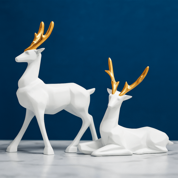 GGS Deer Figurine Home Decor Set, White Ceramic Deer Statues for Indoor Use