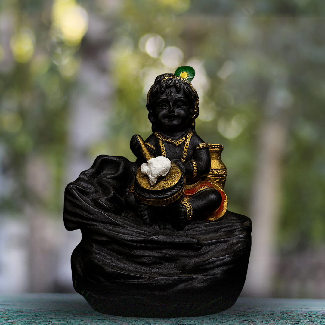 Balkrishna Laddu Gopal Black Gold Smoke Backflow Fountain with 10 Free Cones for Home Puja Room Office Shop Decor