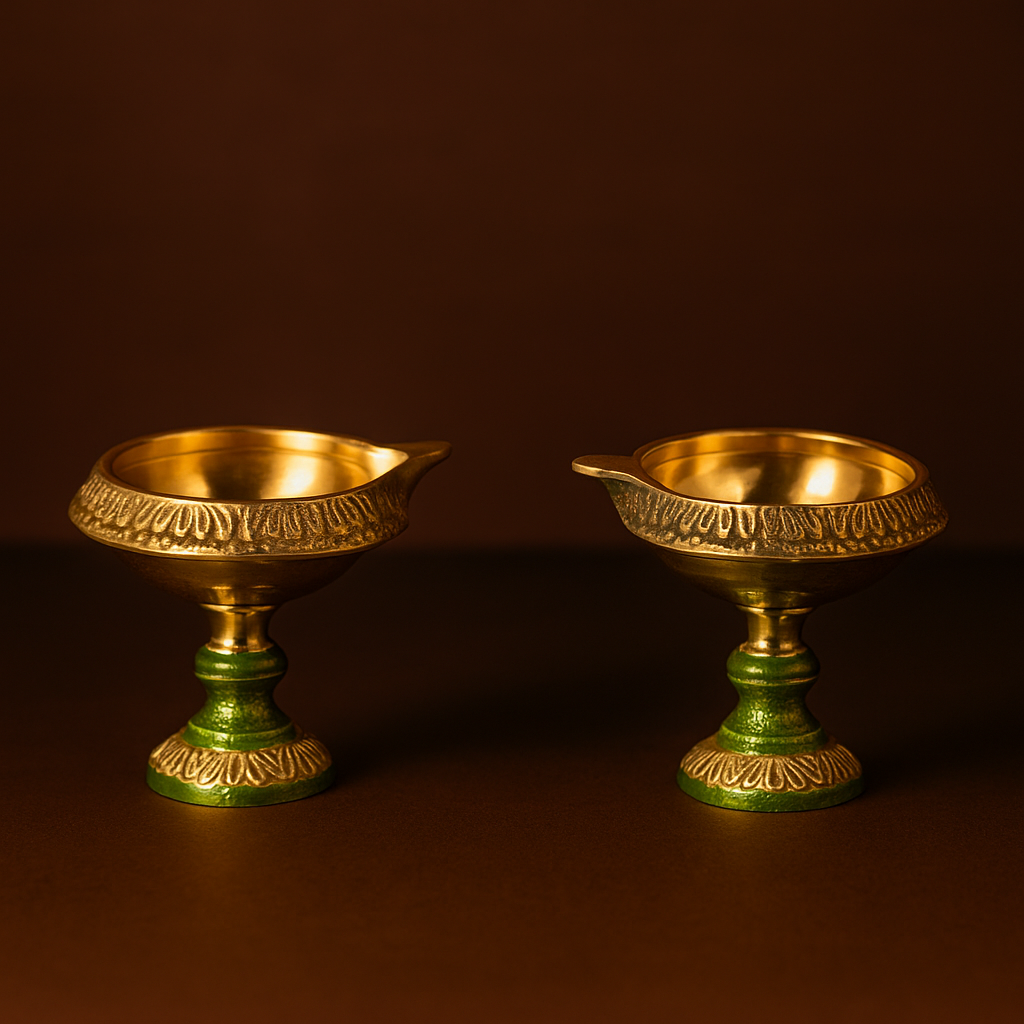 Brass Kuber Diya with Stand Handmade Set of 2 Vastu Piece for Puja Diwali Home Office Shop Mandir