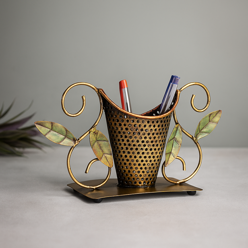 Designer Antique Style Metal Stationary Pen Stand Storage for Home Office Table Decor