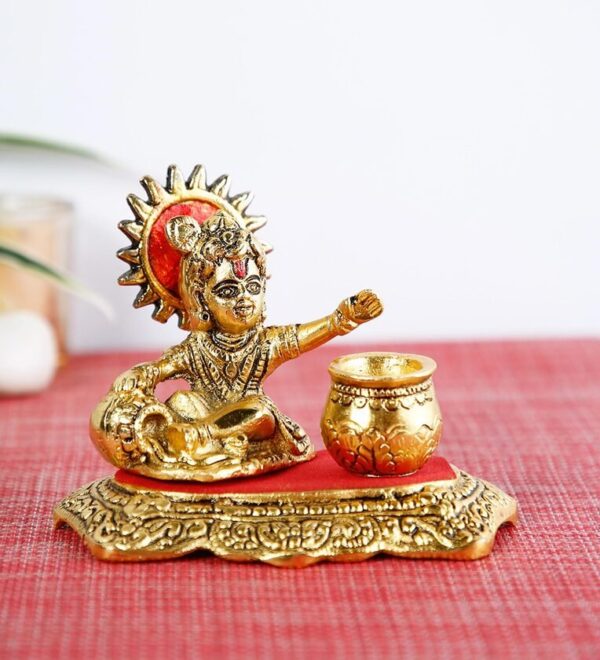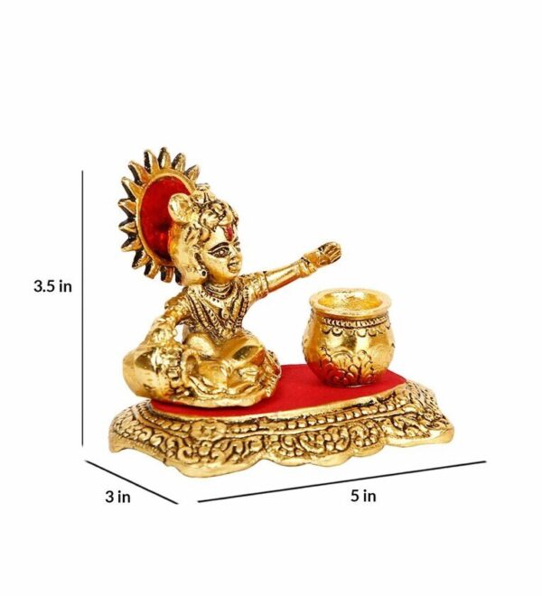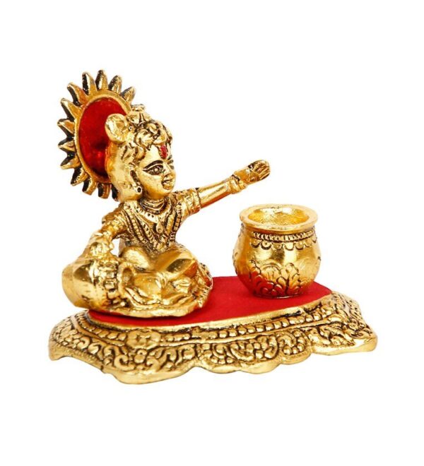 GGS butter eating Balakrishna sitting on red pedestal for Home Temple, Home Shrine and Table Decor