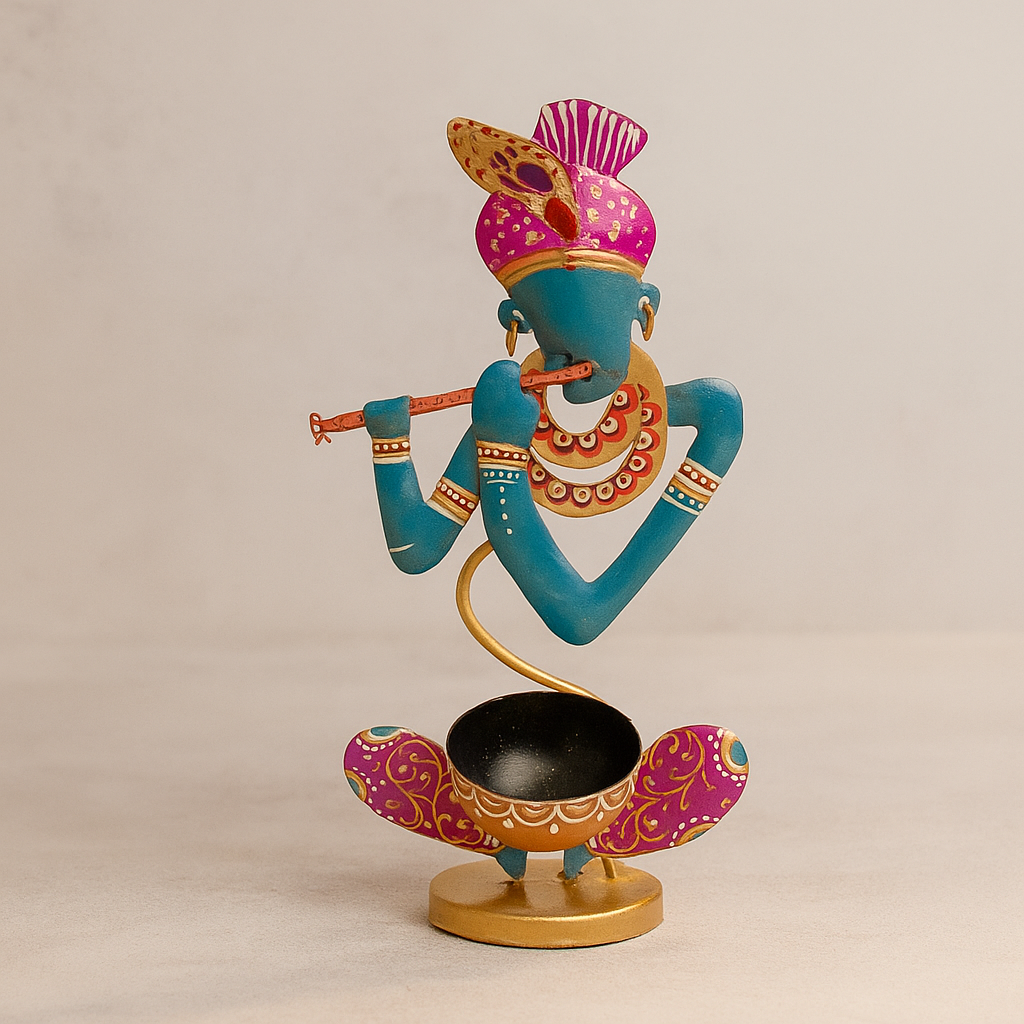 GGS Flute playing Krishna blue Tealight Candle Holder for home living room decor.