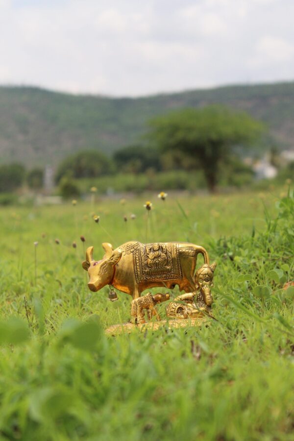 GGS Kamadhenu cow and calf for Home Temple, Home Shrine, Temple and Table Top Decor