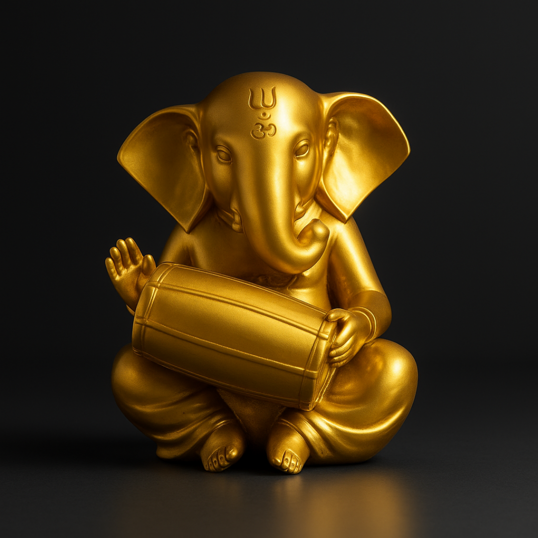 GGS Golden Tabla Ganesh for Home and Table Decor