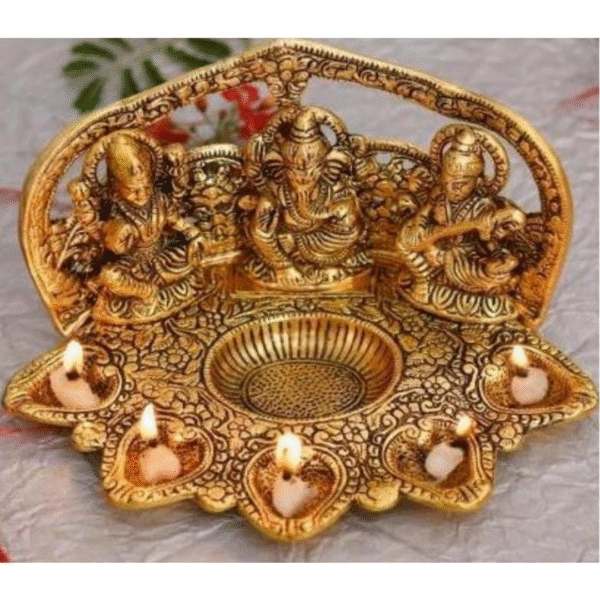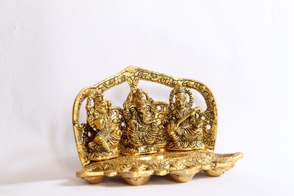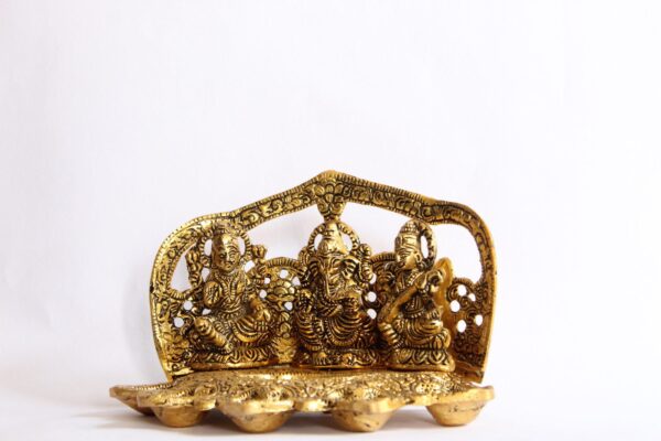 GGS Lakshmi, Saraswathi and Lord Ganesh lamp with 5 wicks for for Home Temple, Home Shrine and Table Decor