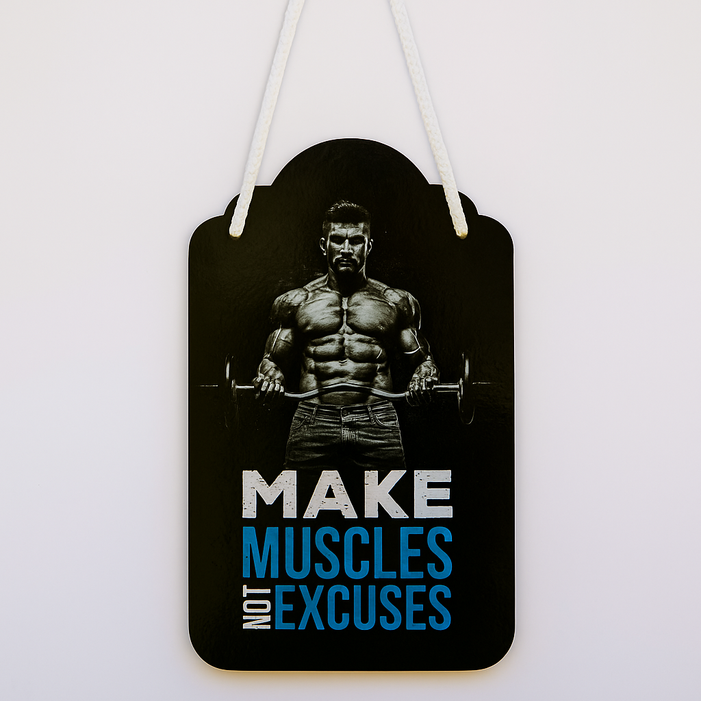 GGS Make Muscles No Excuses Wall Art Sign, Motivational Gym Wall Hanging for Home, Office