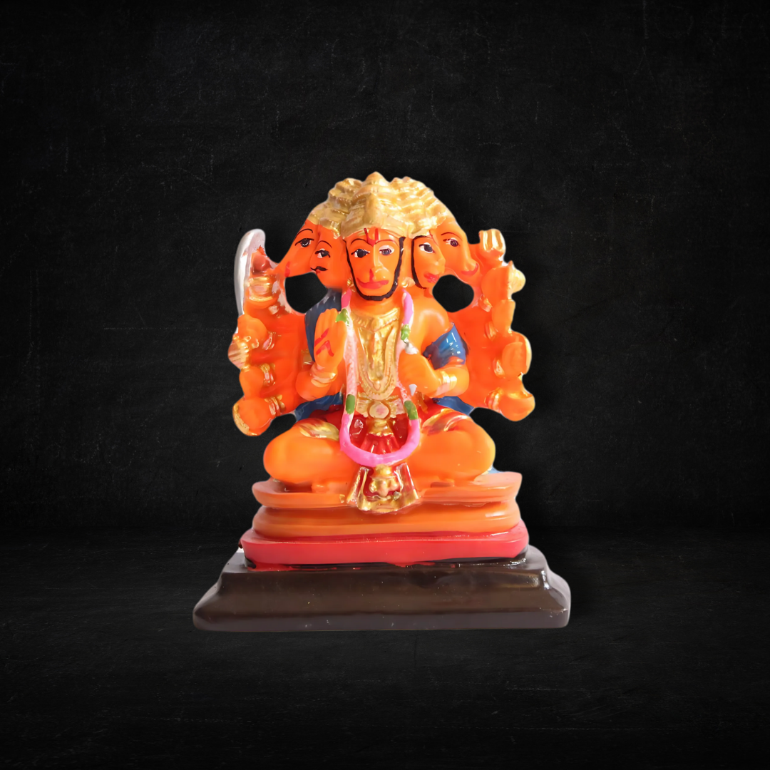GGS Orange Resin Panchamukhi Hanuman for Home Temple, Table Top Decor