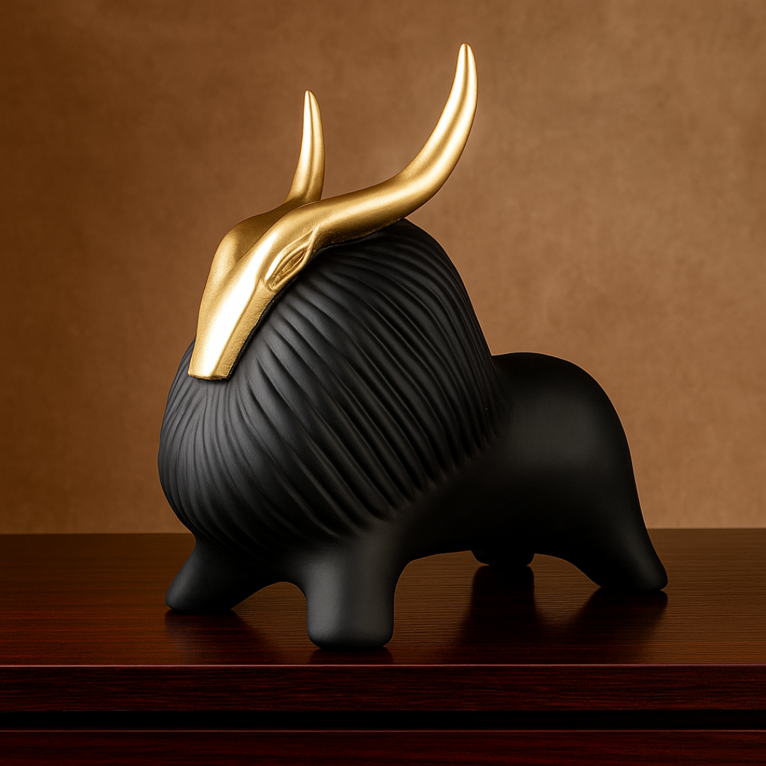 Add a bold touch to your space with the GGS Resin Black Yak. Featuring a matte black finish with striking golden horns, this modern décor piece is perfect for home shelves, office desks, or tabletops—symbolizing strength, elegance, and style.