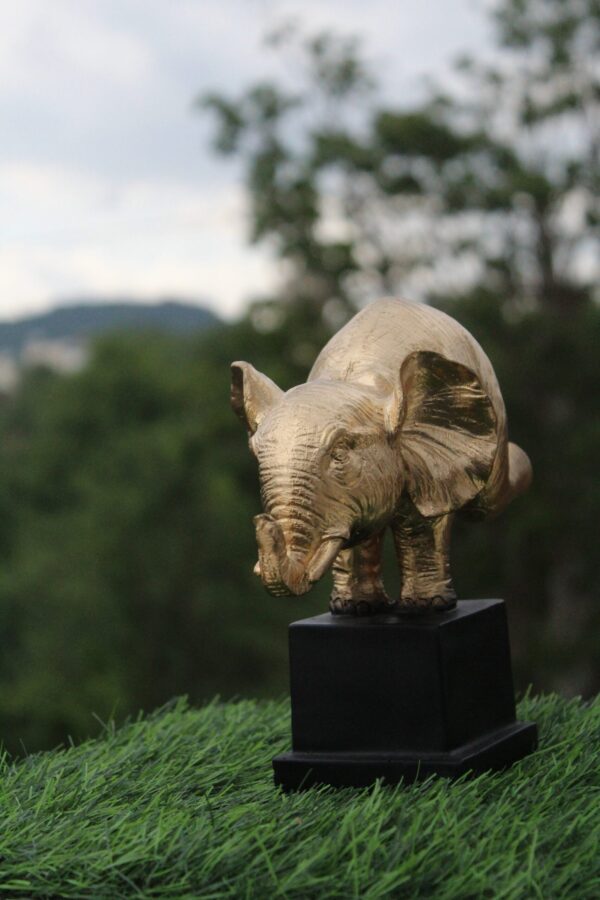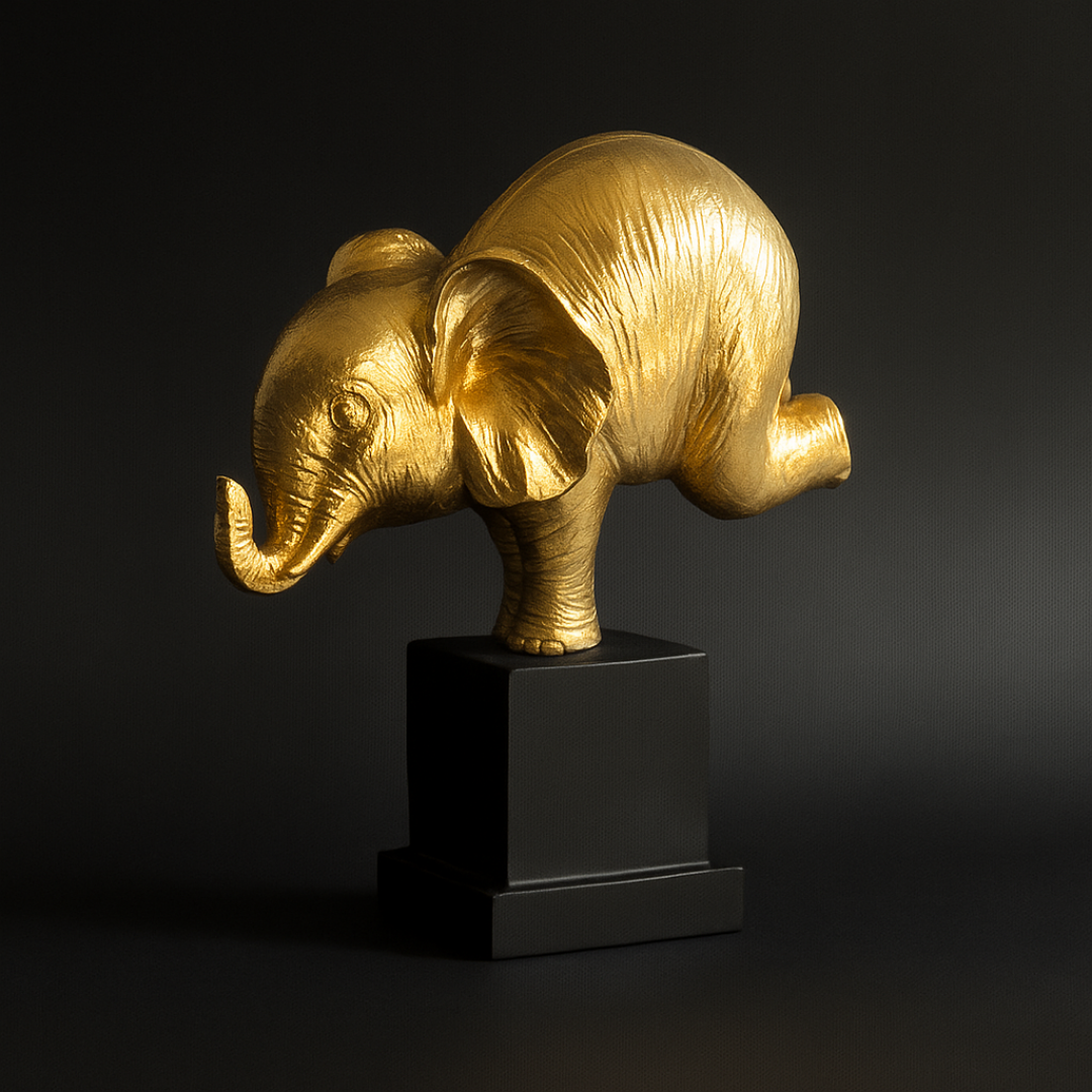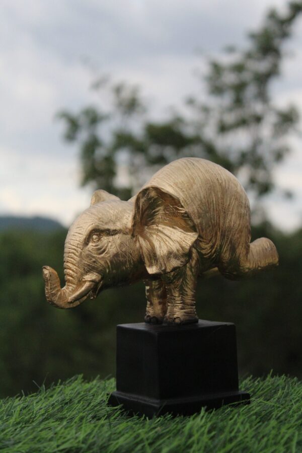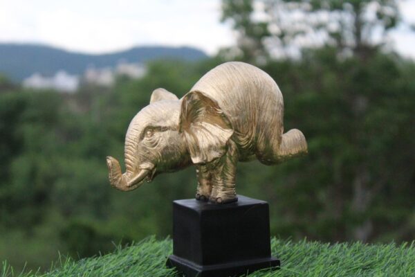 Add a touch of fun and luxury with the GGS Resin Golden Circus Elephant. Featuring a playful elephant balancing on one leg with a rich gold finish and sleek black base, it’s perfect for enhancing your home, office, or tabletop décor.