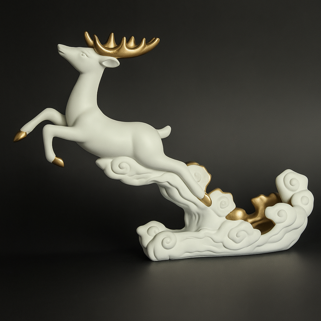 Showcase your wine in style with the GGS Resin White Deer Wine Bottle Holder. Featuring a graceful white deer with golden antlers leaping over sculpted clouds, this elegant piece adds artistic charm and utility to your home or tabletop décor.