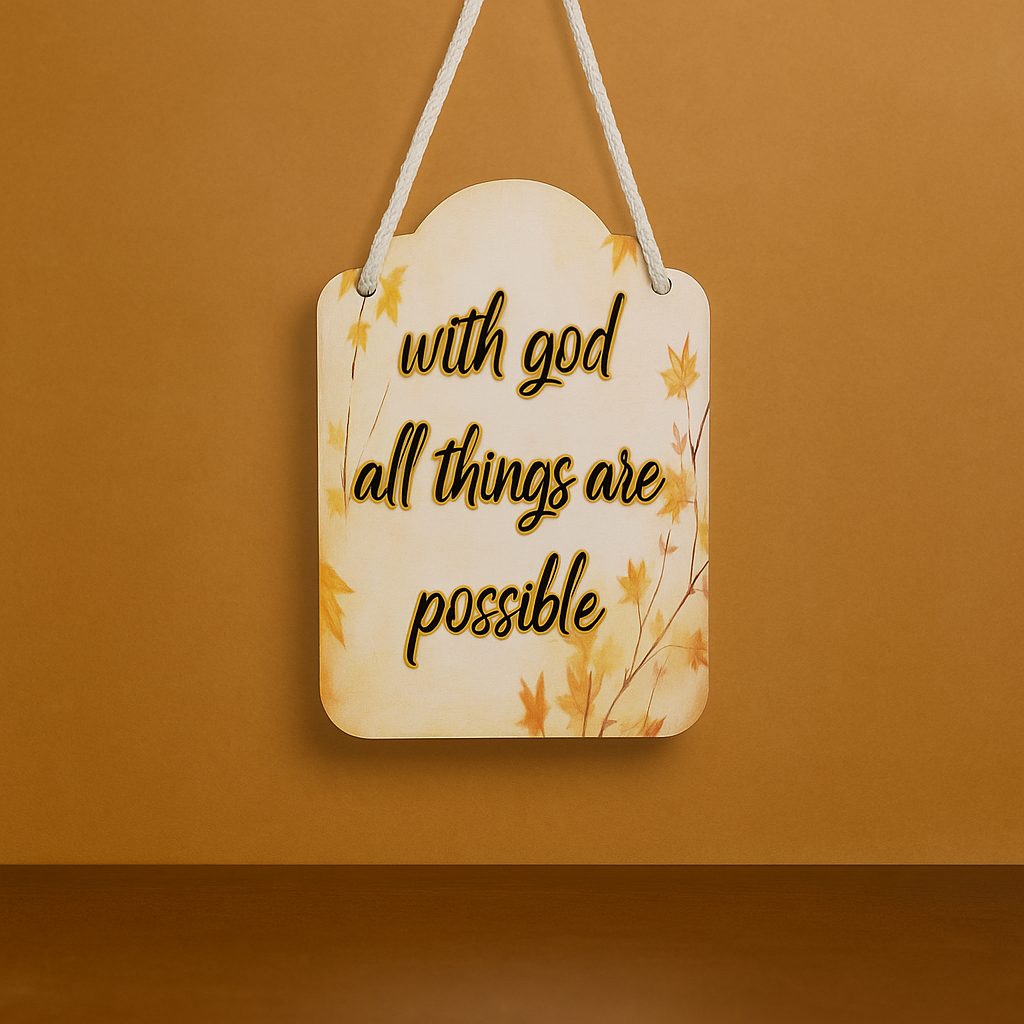Inspire faith and positivity in your home with this graceful “With God All Things Are Possible” hanging plaque. Featuring elegant yellow script on a soft floral background, this decorative sign blends spiritual strength with calming design. Perfect for prayer rooms, bedrooms, or entryways, it serves as a daily reminder of hope and divine possibility. Lightweight and easy to hang with a sturdy rope, it’s a meaningful gift for loved ones or a peaceful addition to your own space.