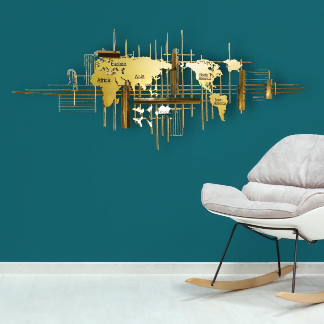 Golden Atlas – Modern World Map Metal Wall Art