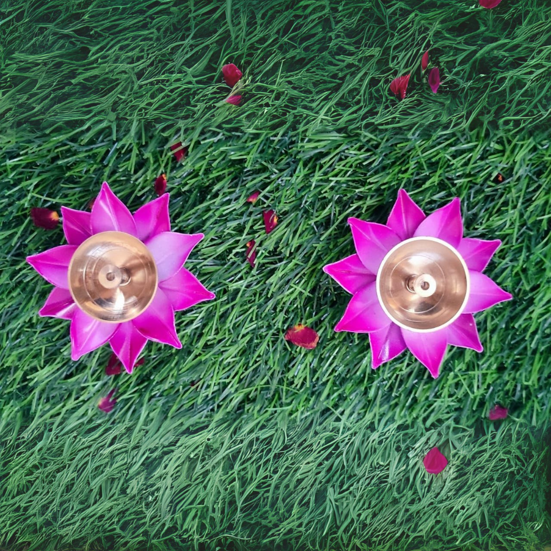 Pink Lotus Diya Lamp for Home Puja Room Decor