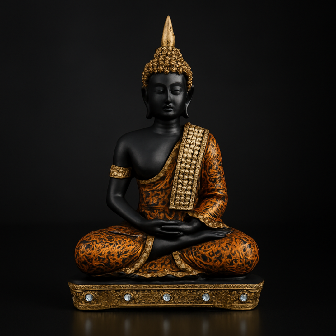 Polyresin Orange Black Meditating Buddha Statue for Living Room Bedroom Office Shop Home Office Decor and Gifting Purpose